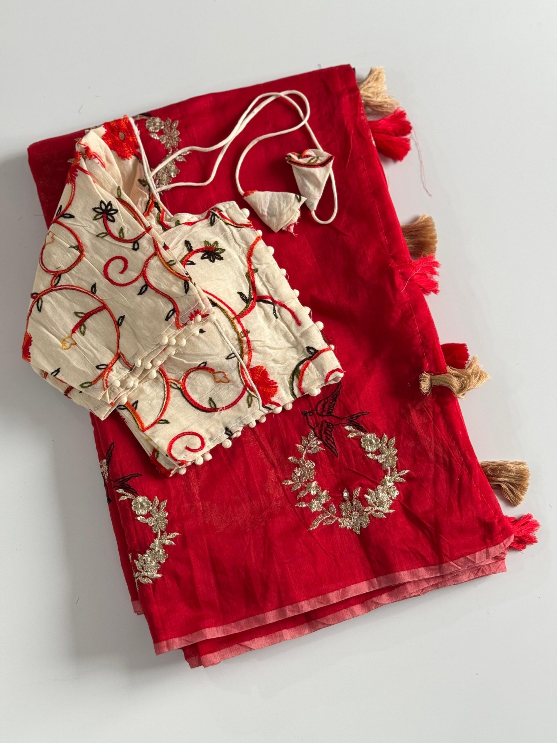 • Pallu: Enhanced with charming cotton tassels for a graceful finish