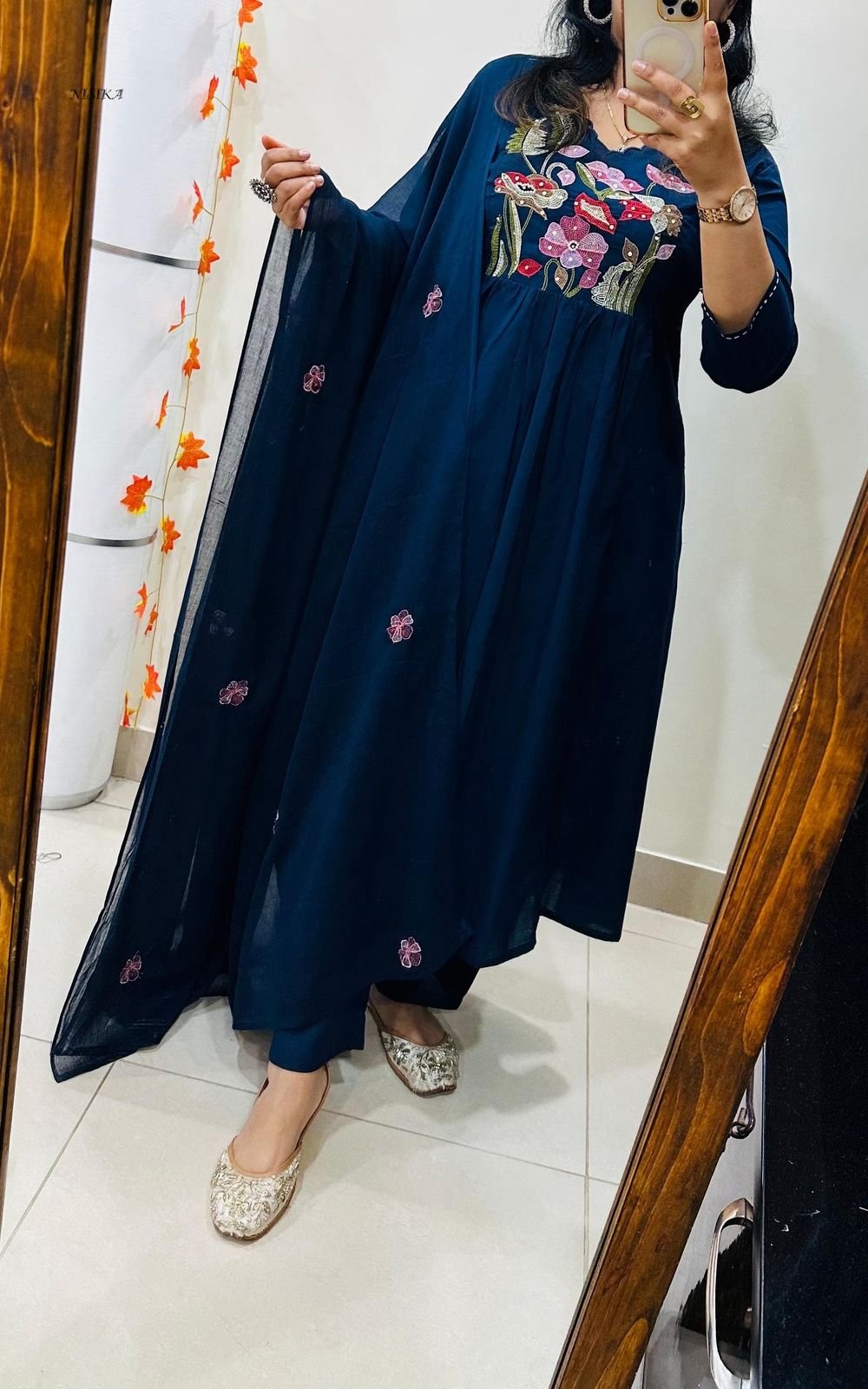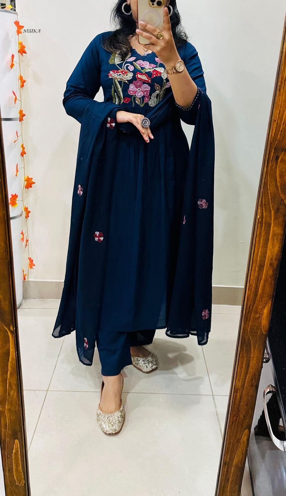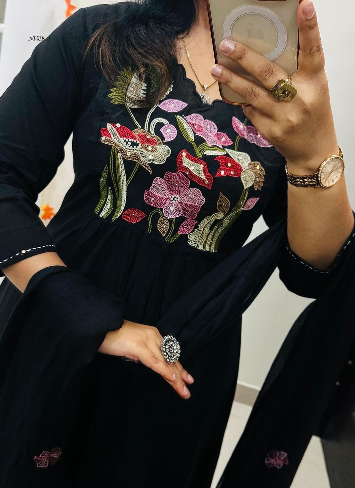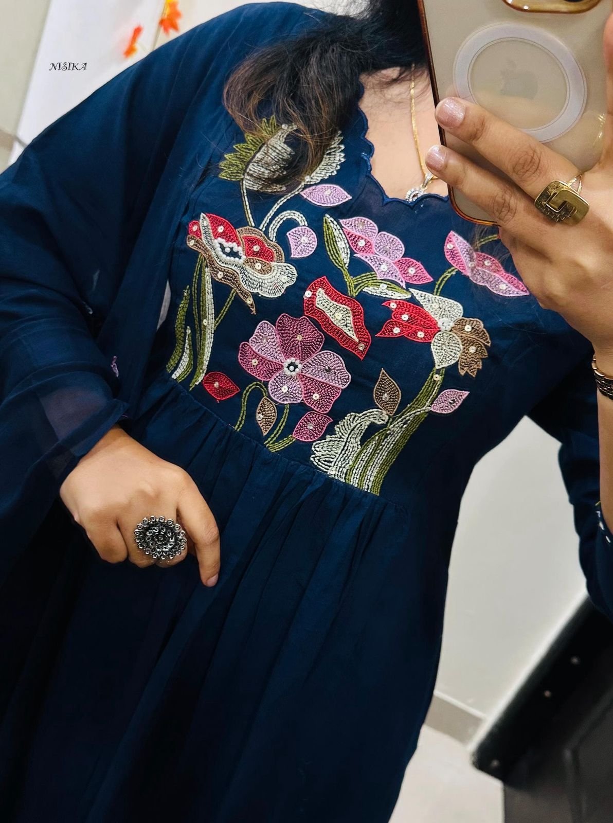 Note : Rich Embroidery and Applique detailing….Anarkali style with both side pockets and no side slit