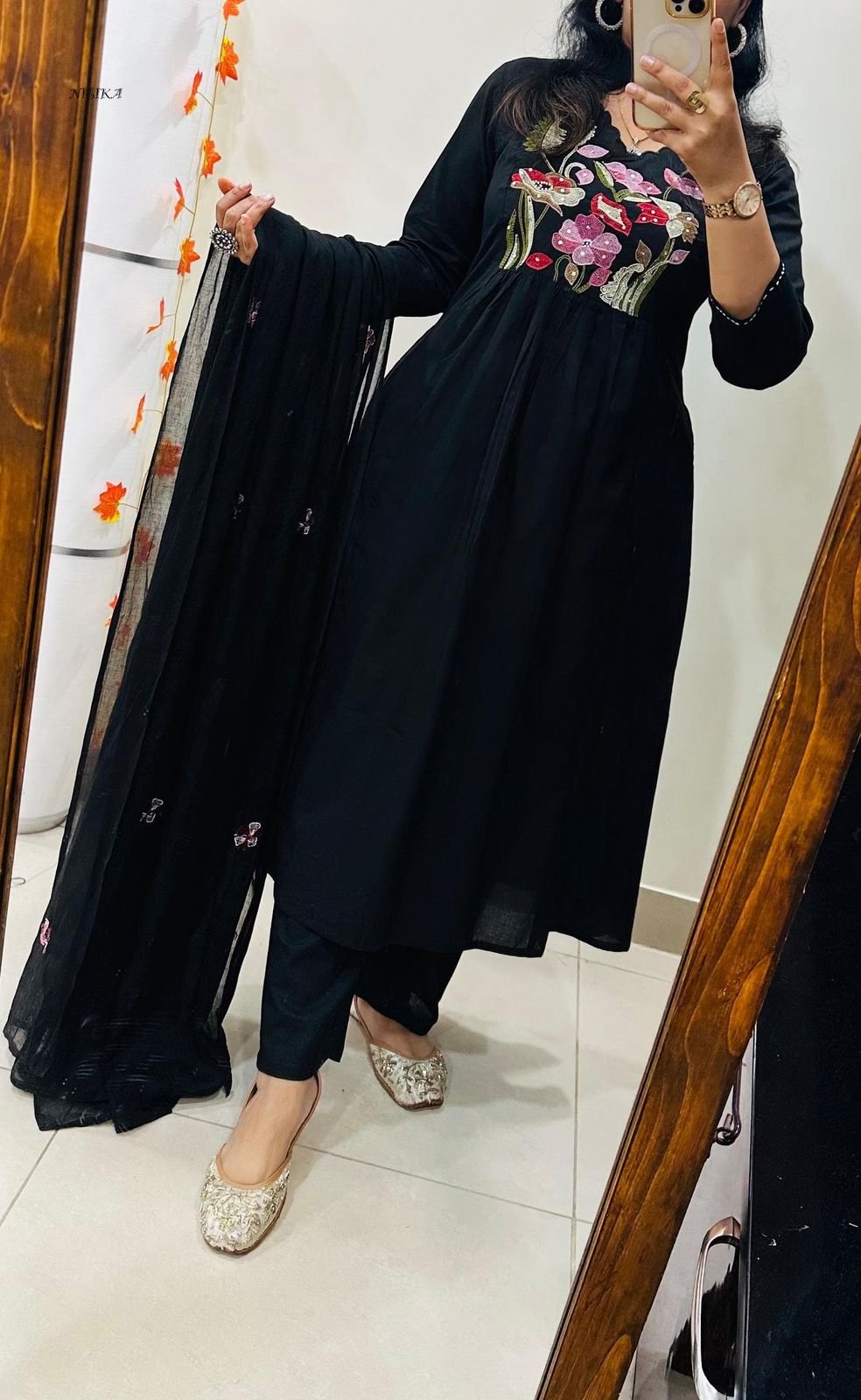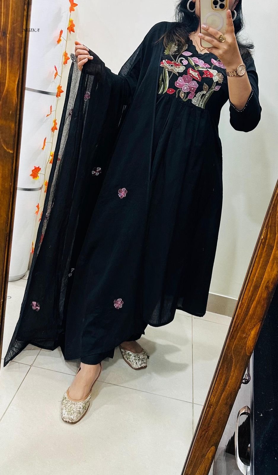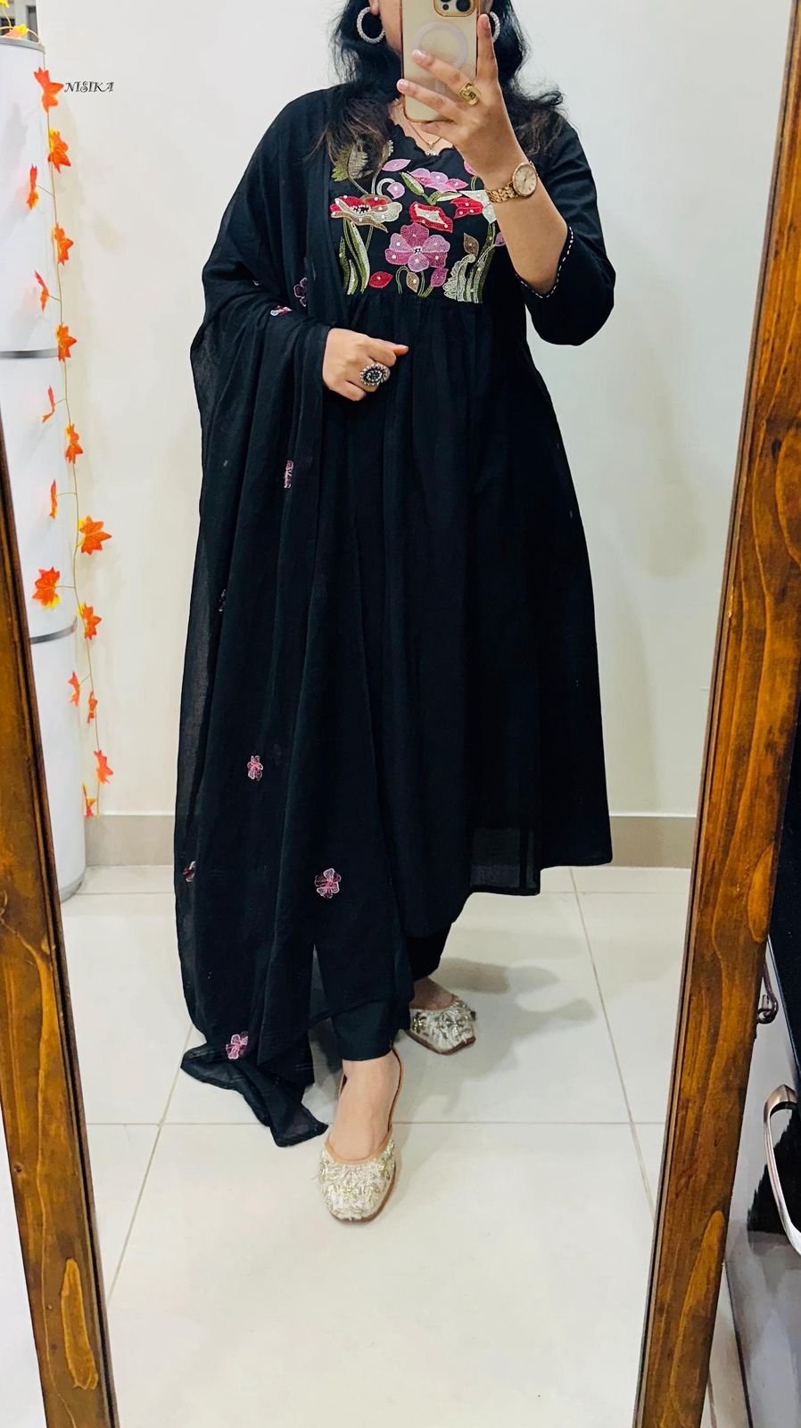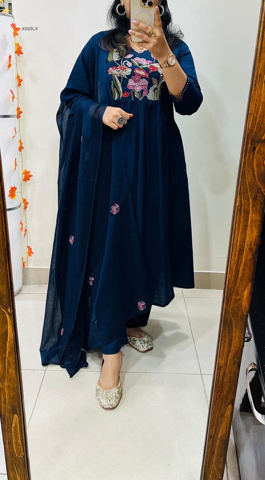 Note : Rich Embroidery and Applique detailing….Anarkali style with both side pockets and no side slit