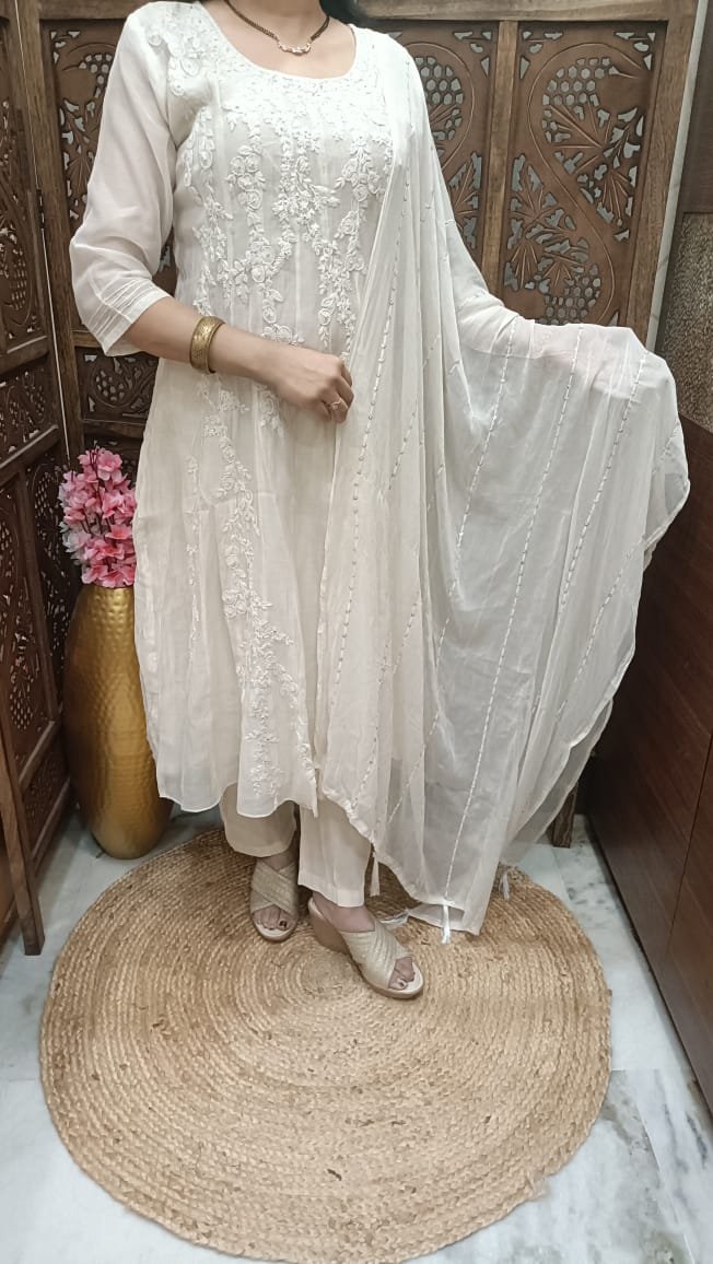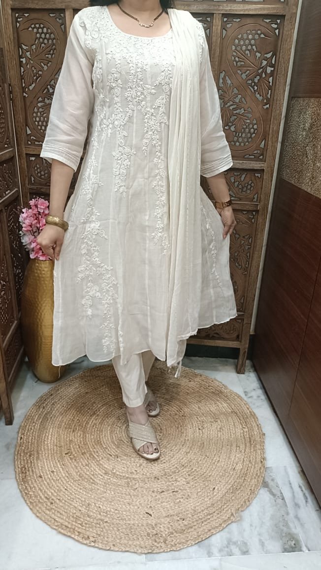 * its Pure linnen cotton aline kurti wid beautiful hand work wid pant n chiffon full work dupatta*